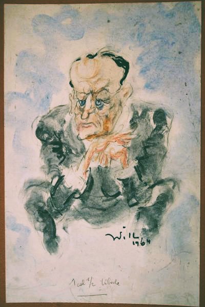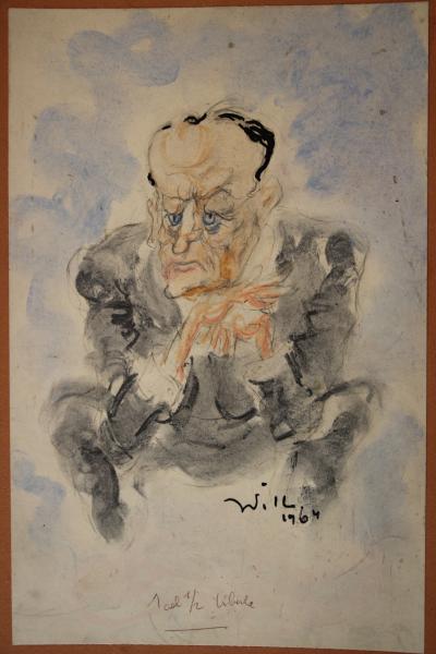 André Malraux par Will, aquarelle originale en 1964 (collection Nuage Vert)