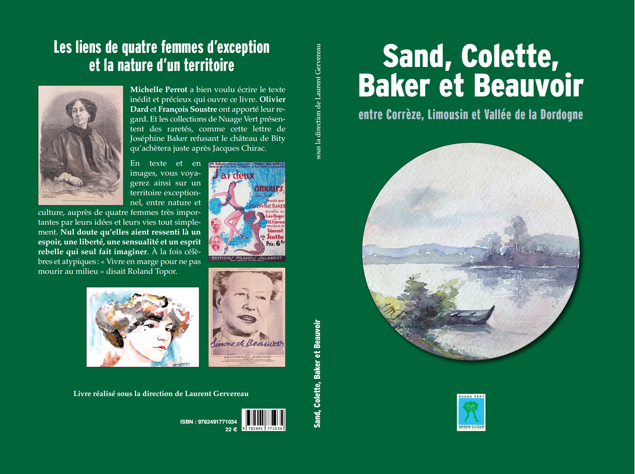Vous retrouverez aussi Colette (à Varetz près de Brive) –la BNF lui consacre une exposition– et sa fille Colette de Jouvenel (à Curemonte). Michelle Perrot avait écrit pour Nuage Vert un texte inédit en 2020 pour le livre : SAND, COLETTE, BAKER ET BEAUVOIR entre Corrèze, Limousin et Vallée de la Dordogne
