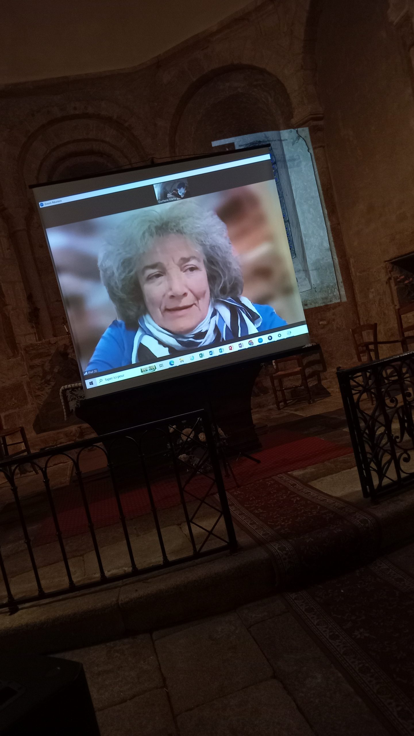 une interprétation de l’éblouissement premier devant l’oeuvre monumentale Regards de Lumière de Francis Guerrier, artiste qui a généreusement accompagné depuis 2015 les Rencontres-Promenades « Histoires de Passages… » et Nuage Vert. En 2022, alors que la guerre en Ukraine occupait l’actualité, il rappelait les vies et le patrimoine détruits de la Syrie dans la chapelle Jeanne d’Arc à Argentat-sur-Dordogne : une nef inversée portant des photos lumineuses d’enfants et d’adultes qui nous regardaient, tirées de 4 heures de film réalisé en 2000 à Alep, Damas, Palmyre et Bosra. Une oeuvre-mémoire forte visuellement et par son émotion qui marque des publics de tous âges