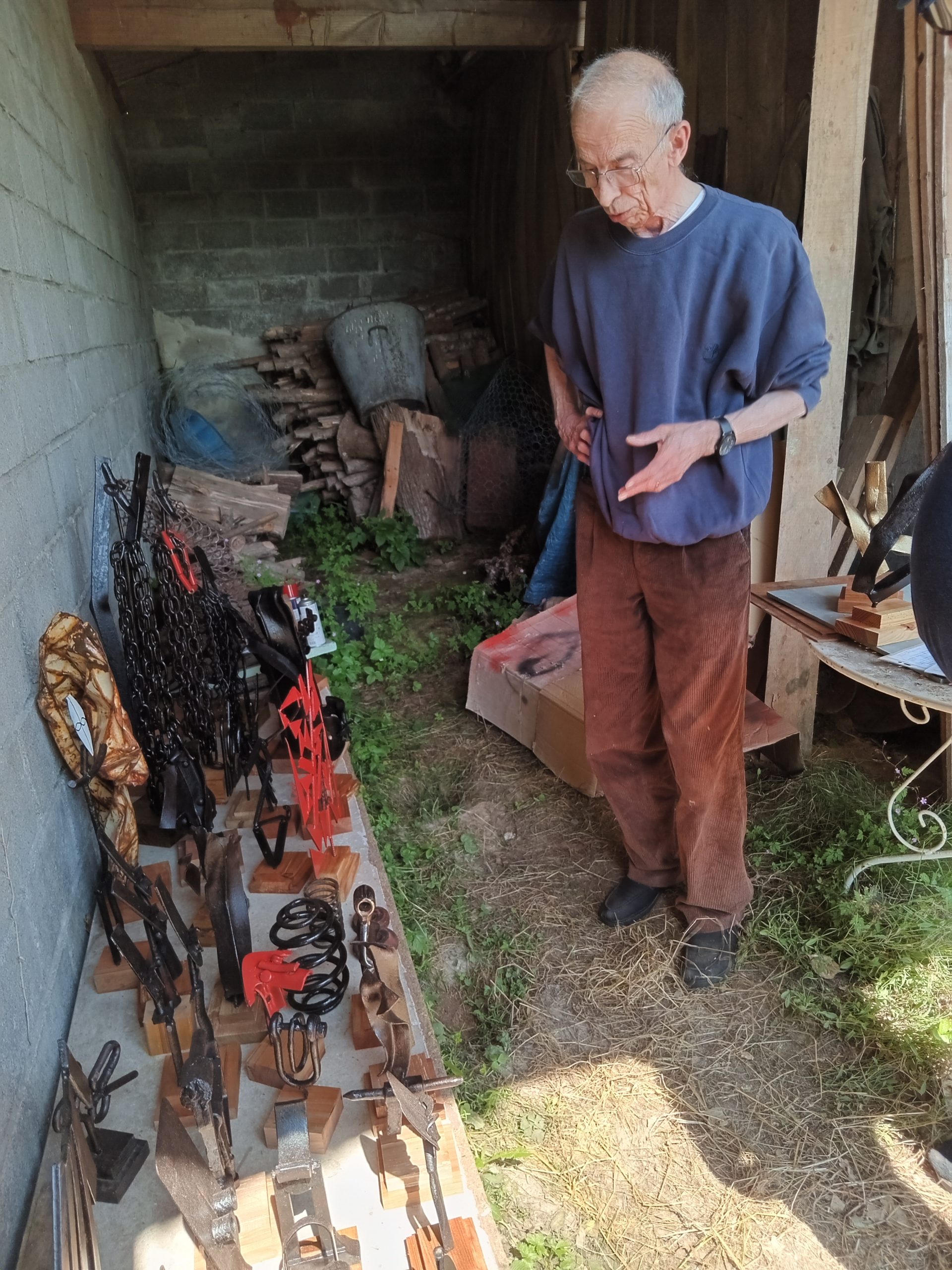 Pierre Bergounioux dans son atelier de sculptures en Corrèze