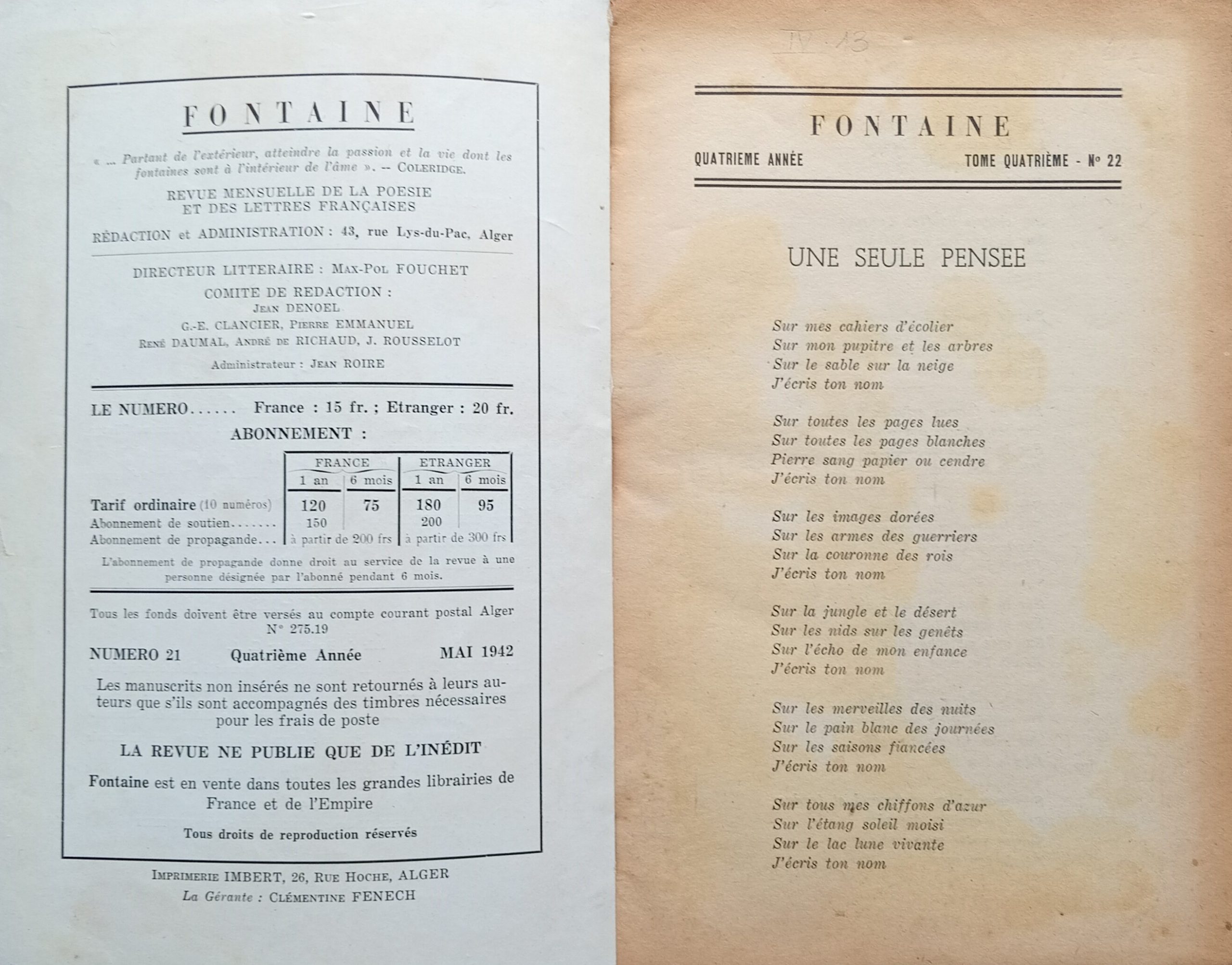 - – Gérard Vulliamy (dessins pour l’album de Paul Eluard Souvenirs de la maison des fous, édition originale 1946)