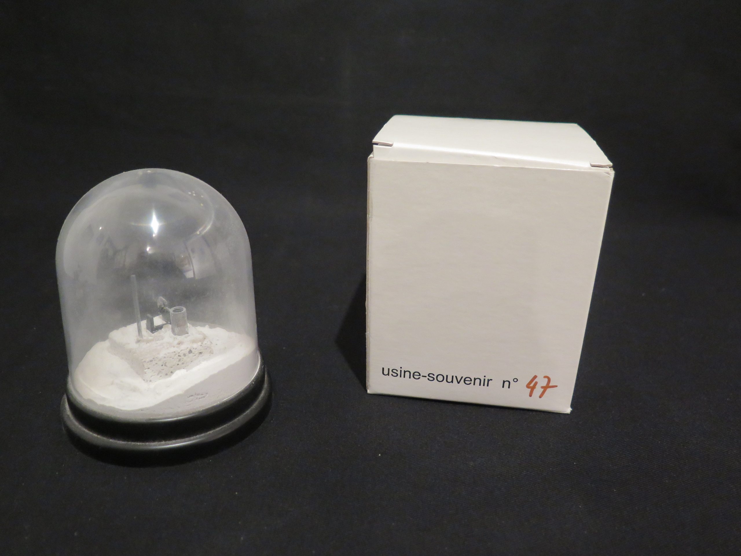 Usine-Souvenir n°47, installation par Louis Rollinde créée en 1990. Cette oeuvre volontairement dérisoire est une façon d’interroger la désindustrialisation et ses effets. Cette sculpture-installation a été présentée en 2021 dans l’histoire des dystopies : La fin du monde ne date pas d’aujourd’hui. Louis Rollinde a fait une importante donation d’oeuvres à Nuage Vert en 2022, qui ont une portée locale et universelle