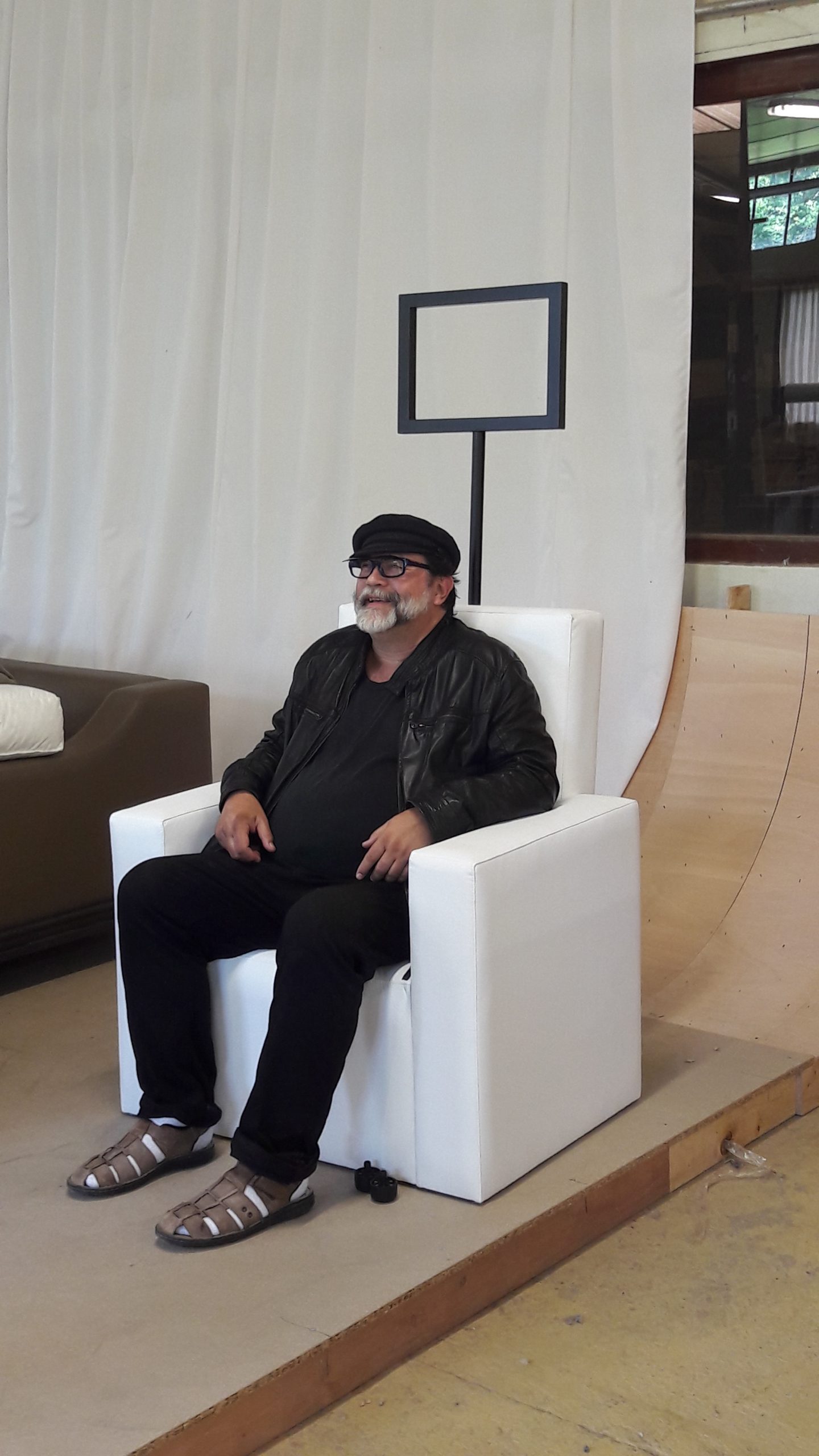 Laurent Gervereau / Mister Local-Global le 20 juillet 2016 à la Manufacture d’Argentat dans le « Fauteuil Points de Vue ». Le fauteuil « Points de vue » a été créé par Mister Local-Global pour l’édition 2016 des Rencontres-Promenades « Histoires de Passages… » grâce au partenariat avec la Manufacture d’Argentat. Il s’agit du premier des « meubles philosophiques » de l’artiste, c’est-à-dire de meubles exprimant une idée, tout en innovant par leurs formes. Rappelant les sculptures monumentales « Cité des points de vue », ce fauteuil de cuir blanc est surmonté par un dispositif pivotant de cadrage visuel. Il exprime ainsi la diversité des points de vue que nous pouvons avoir sur ce que nous appelons le « réel », suivant l’angle du regard et le choix du cadre. Le partenariat entre Nuage Vert et la Manufacture d’Argentat a conduit à la réalisation d’un tabouret par Louis Rollinde et d’un fauteuil par Speedy Graphito. Laurent Gervereau a conçu des expositions de différents artistes pendant un an dans la galerie-showroom qui fut celle d’Andrée Putman rue Jacob à Paris. Le 14 janvier 2026, Emmanuel Blateau est venu à Nuage Vert pour faire des démonstrations sur : « La manufacture D’ARGENTAT ou comment créer un meuble et perpétuer des pièces historiques »